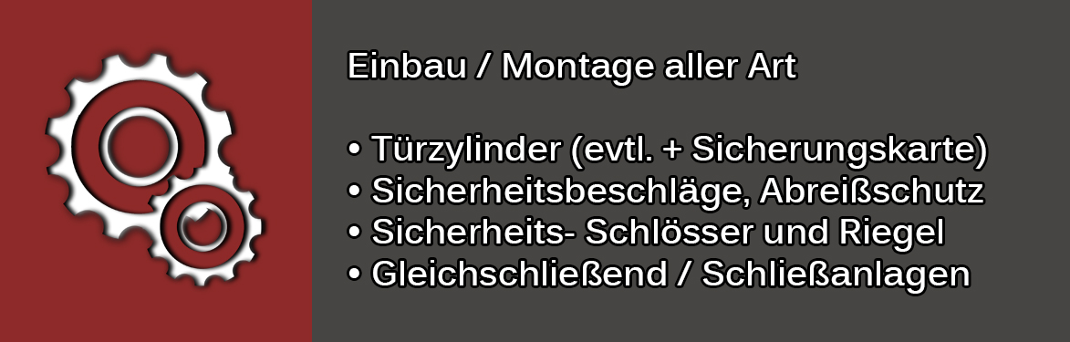 • Montage von Schließzylindern, Panzerriegel, Zusatz-Schlösser für Fenster und Türen.